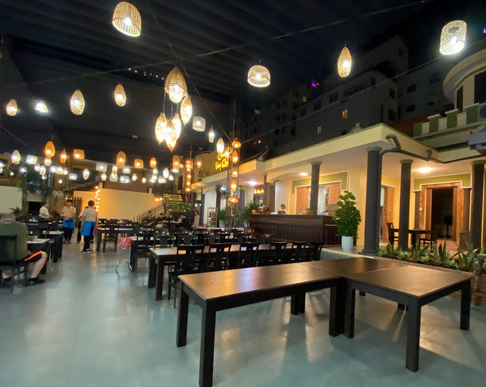 Không gian tại nhà hàng Hoàng Sa Restaurant được lấy cảm hứng từ những giá trị truyền thống của Việt Nam. Hoàng Sa Restaurant sử dụng tô, chén, bát, đĩa từ gốm Bát Tràng để tạo nên một cảm giác xưa cũ, thư giãn, thoải mái, dịu êm và ấm cúng. Không gian rộng, mát mẽ.